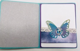 Jeg valgte et bakgrunns papir i blått som jeg hadde laget selv...på fronten fant jeg et ark med fugler.( det var en liten rest jeg hadde ..mener at det er fra papir design men usikker.Da synes jeg det passet bra med tema fugler/vår inni kortet også.Stanset ut papir-blonder rundt kantee.Denne gangen har jeg ikke brukt kutte-maskin.